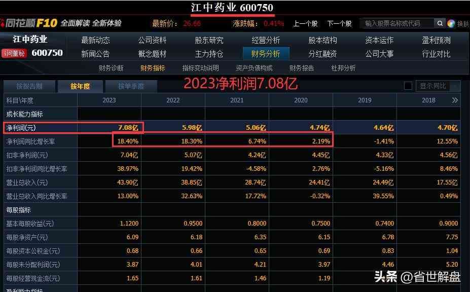 江中药业是一家江西的医药公司,主营药品和大健康产品的生产、研发与销售。主要产品涵盖非处方药、处方药及大健康产品。公司拥有驰名商标“江中”和“初元”,其中“江中”品牌价值高达376.29亿元,位列医药行业第六,其健胃消食片连续十九年位居非处方药消化类榜首。2023净利润7.08亿,连续四年净利润保持增长,10派7元(含税),绩优股范畴。