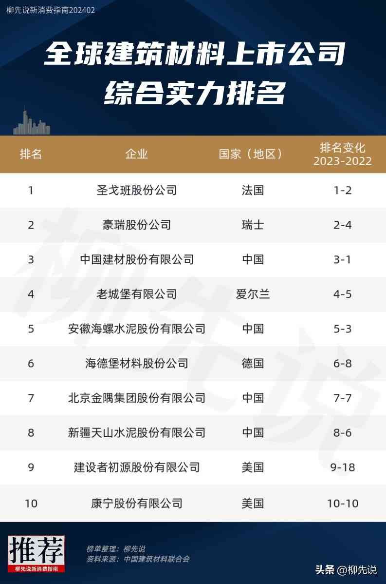 建材股票龙头股有哪些公司,世界建材龙头产生:一年营收约3875亿元,中国4家进全球前十