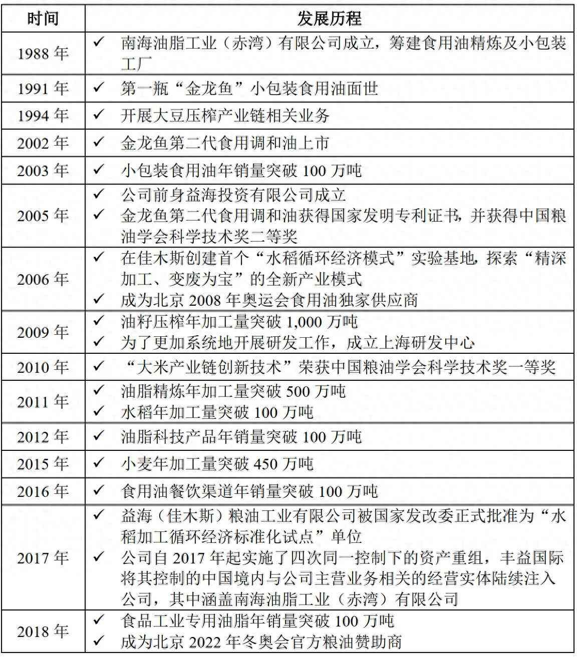 据了解,金龙鱼公司的全称为“益海嘉里金龙鱼食品集团股份有限公司”,由著名爱国华侨郭鹤年与侄子郭孔丰共同投资创办,金龙鱼为其旗下知名的粮油品牌之一。公司前身可追溯至1988年嘉里粮油与中粮集团在深圳合资建立的南海油脂工业(赤湾)有限公司;1991年,公司推出了国内第一桶金龙鱼小包装食用油,引领了中国从散装油到小包装油的消费模式革命;22年,公司又推出了第二代黄金比例食用调和油,率先提出“1:1:1”的膳食脂肪酸平衡概念,引领国人的食用油观念从“安全”向“营养健康”跃升;连续两次的创新,让公司实现了飞速发展;2020年,公司实现在深交所创业板上市。