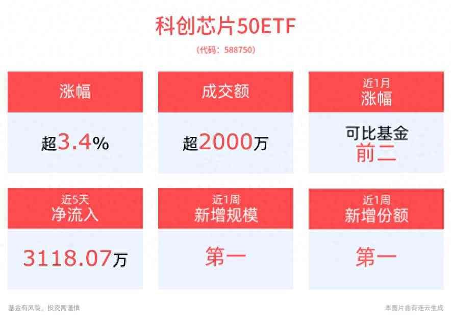 份额方面,科创芯片50ETF近1周份额增长21.万份,实现显著增长,新增份额位居可比基金1/6。