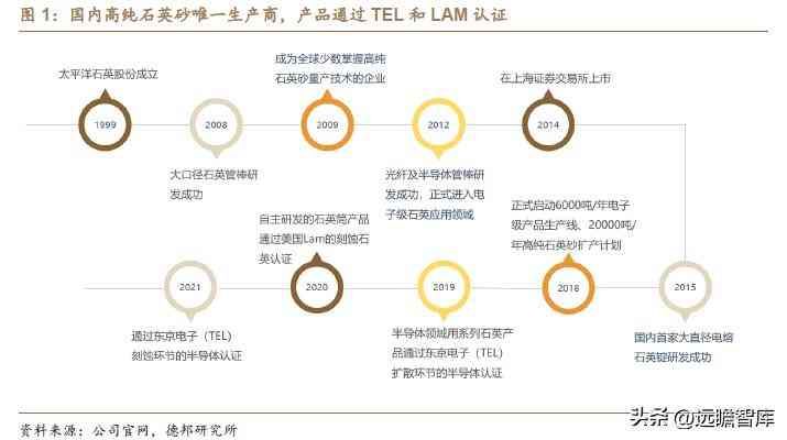 石英股份经过多年的努力,在2019年其半导体领域用系列石英产品通过TEL扩产环节认证;2020年公司通过美国Lam的刻蚀石英认证;2021年公司又通过TEL刻蚀环节的半导体认证;同时公司在美国应用材料AMAT认证也陆续取得阶段性成果,成为国内首家完成TEL高温扩散领域认证的企业,极大提升了公司产品的竞争力和公司在半导体用石英制品供应链中的地位。