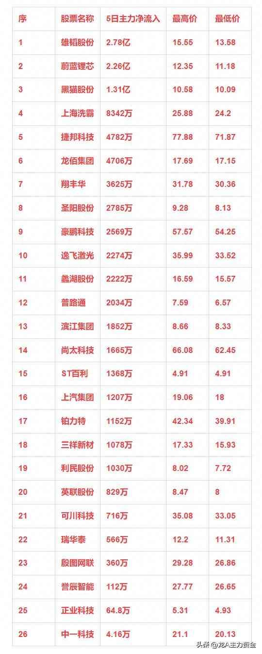 固态电池股票一览表最新,固态电池概念本周主力资金净流入的26强!