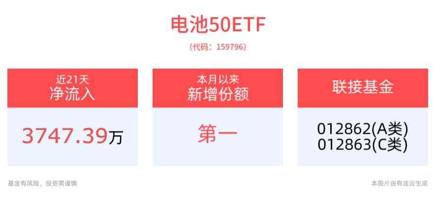 宁德时代领涨,同类规模最大、费率最低的电池50ETF(159796)盘中净申购300万