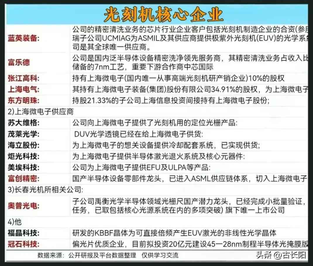 光刻机是制造芯片的核心设备,芯片是现代科技的大脑。光刻机的重要性不言而喻。目前能生产光刻机的国家和公司屈指可数,光刻机市场基本被荷兰的ASML公司垄断。老美现在又禁止我们进口高端的光刻机。目前国内的上海微电子公司只能生产低端的光刻机。国内光刻机相关公司被大家寄予了厚望。