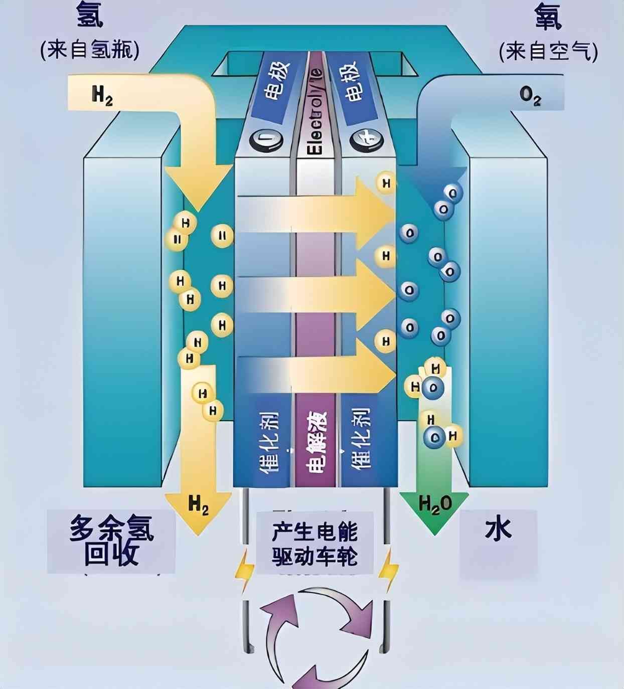 简单说,氢燃料电池是将氢气和氧气的化学能直接转换成电能的发电装置。