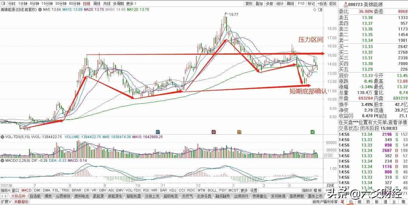 短期支撑:12.34 短期压力:15.12