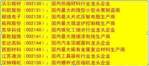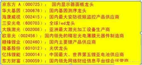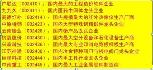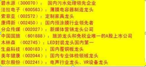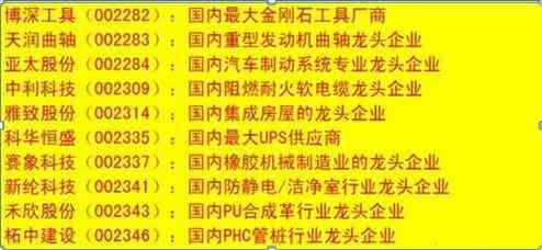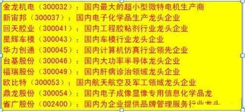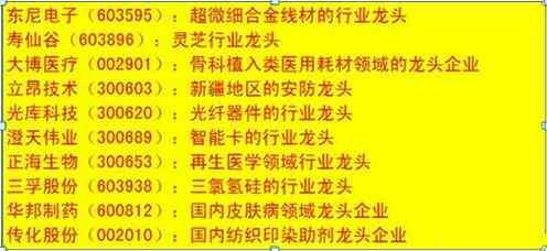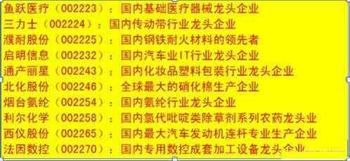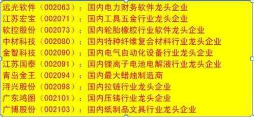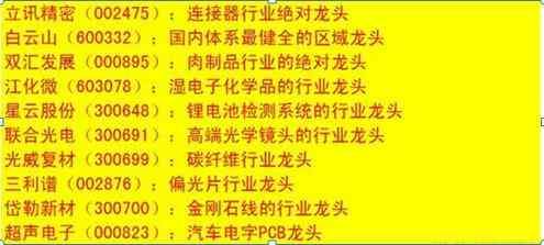 细分行业龙头相关个股一览表: