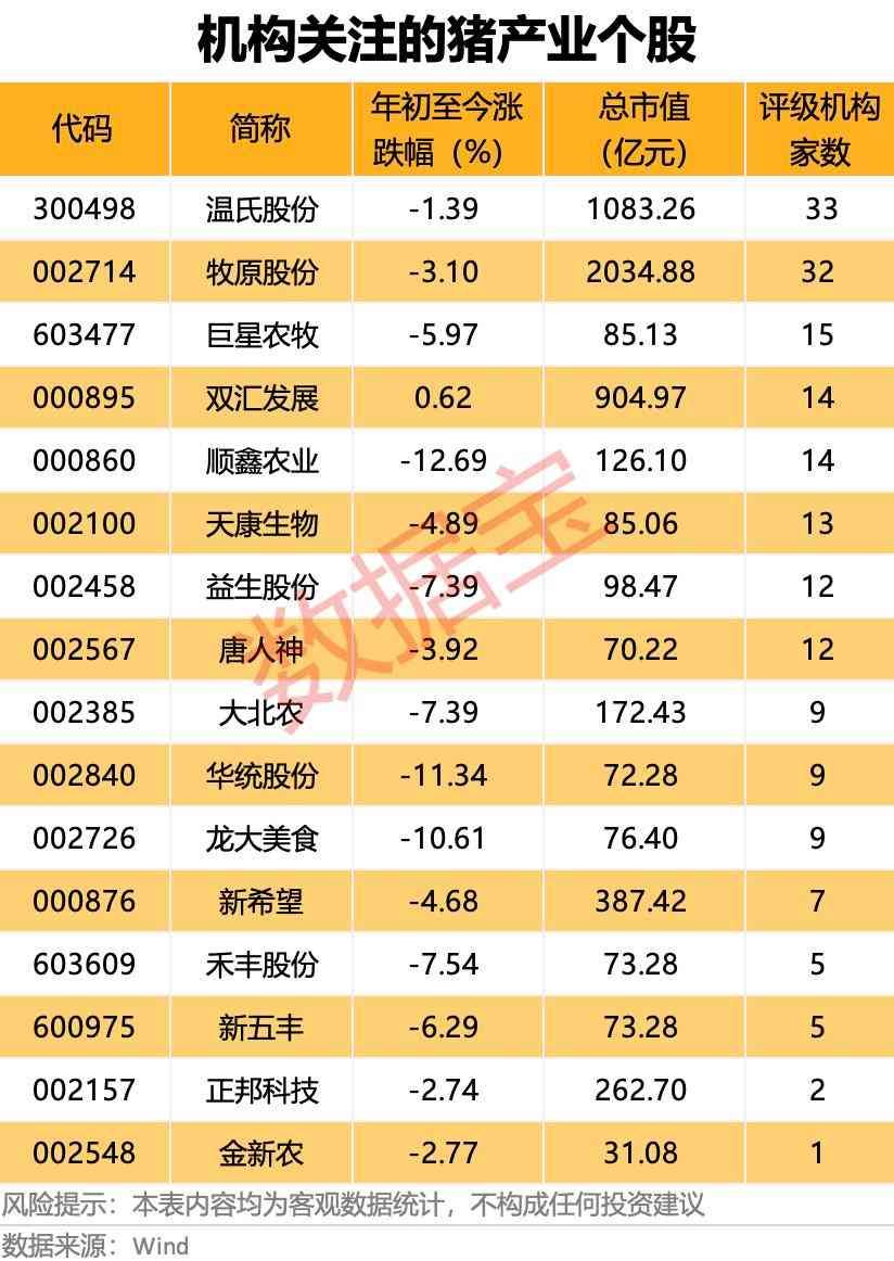从市场行情上来看,猪产业个股今年以来普遍回调,仅正虹科技、双汇发展实现上涨,顺鑫农业、华统股份、罗牛山、龙大美食4股累计跌幅超过10%。
