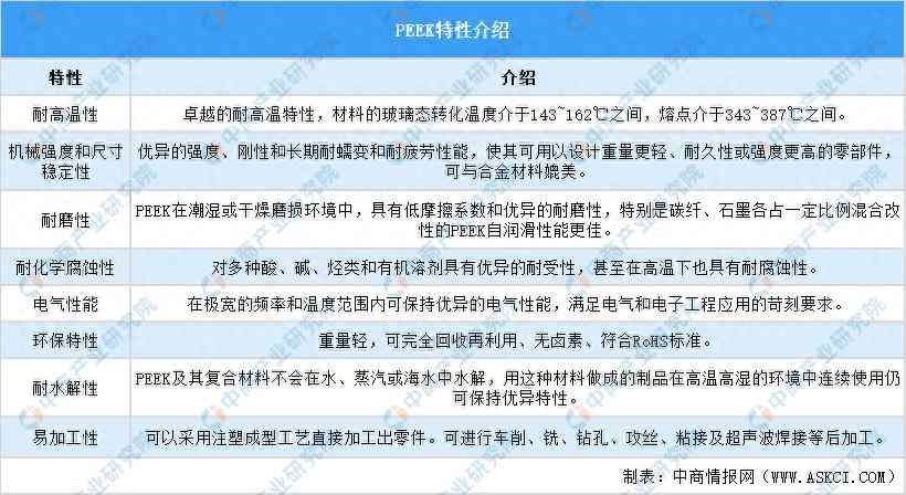 资料《PEEK材料的研究与应用》、中商产业研究院整理