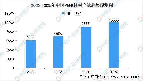 产能方面,中商产业研究院发布的《2025-2030年中国PEEK材料市场调查与行业前景预测专题研究报告》显示,中国PEEK材料2023年产能约为6950吨。中商产业研究院分析师预测,2024年中国PEEK材料产能约为9吨,2025年约为1吨。