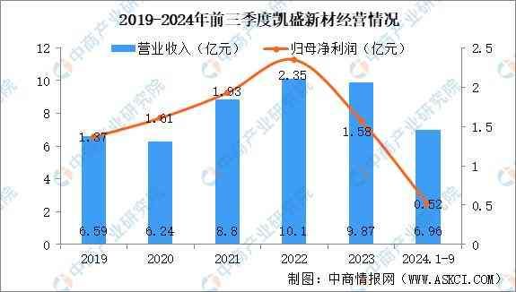 2024年前三季度,凯盛新材实现营业收入6.96亿元,归母净利润0.52亿元。
