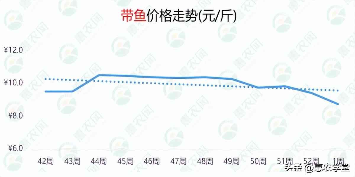 带鱼的市场需求疲软,价格继续向下调整,且跌势呈扩大趋势。第1周,带鱼的价格为8.7元/斤,较上周下跌0.7元每斤。