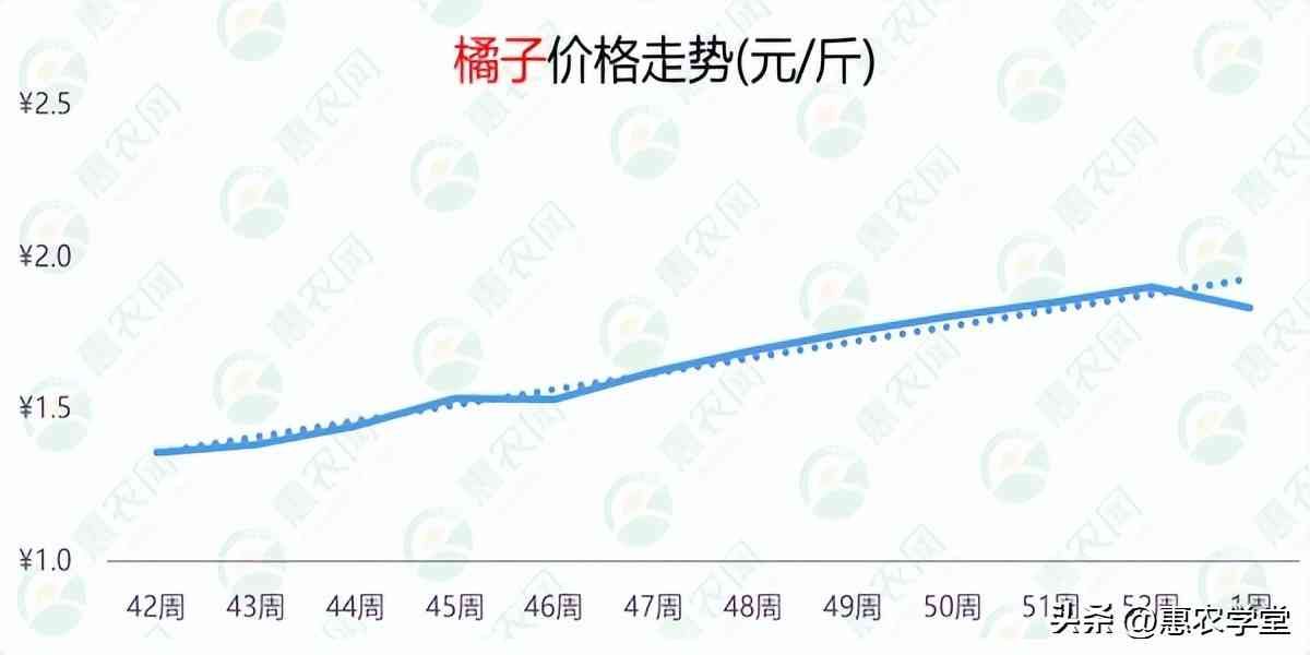 随着橘子的价格上涨至高位,其行情开始回落。第1周,橘子的价格环比下跌4%至1.8元/斤。