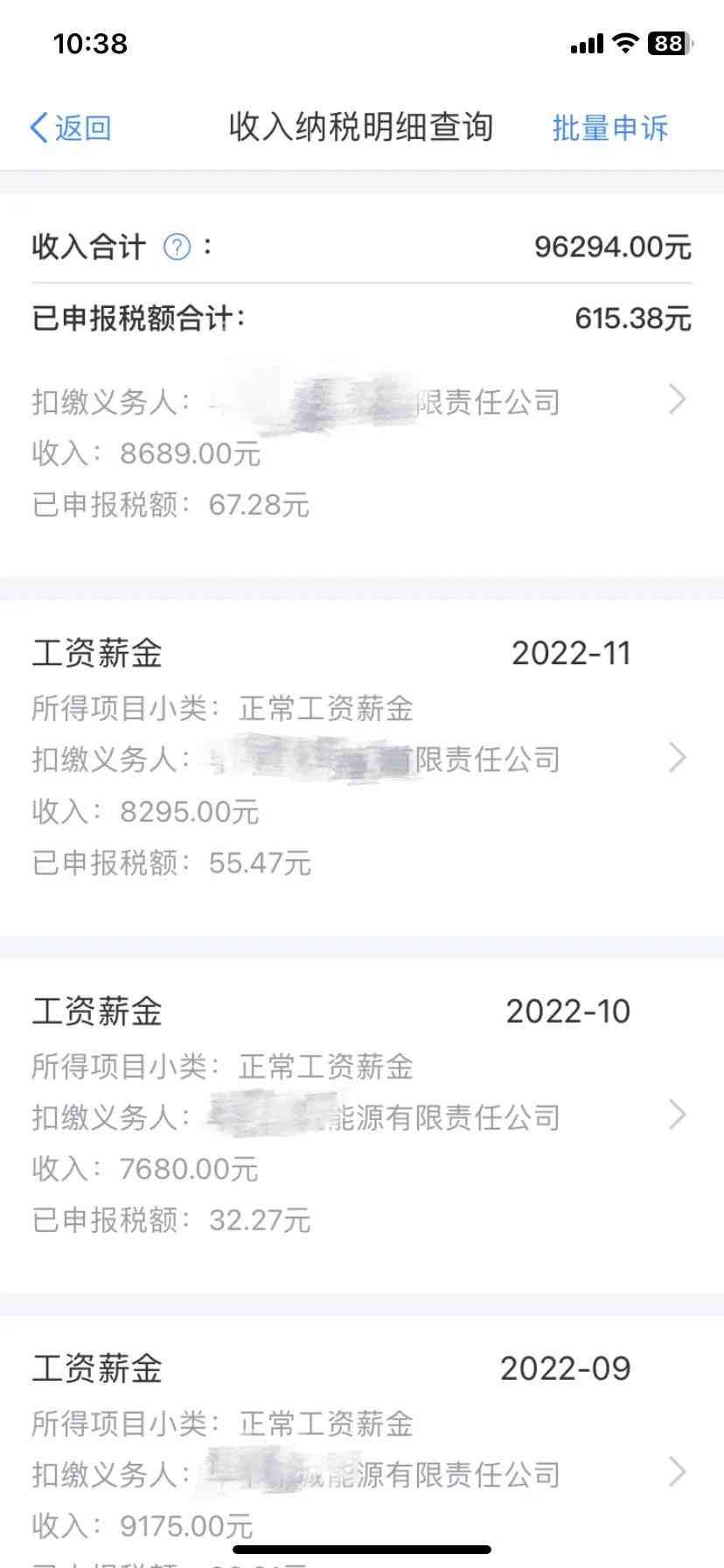 2022年部分收入明细