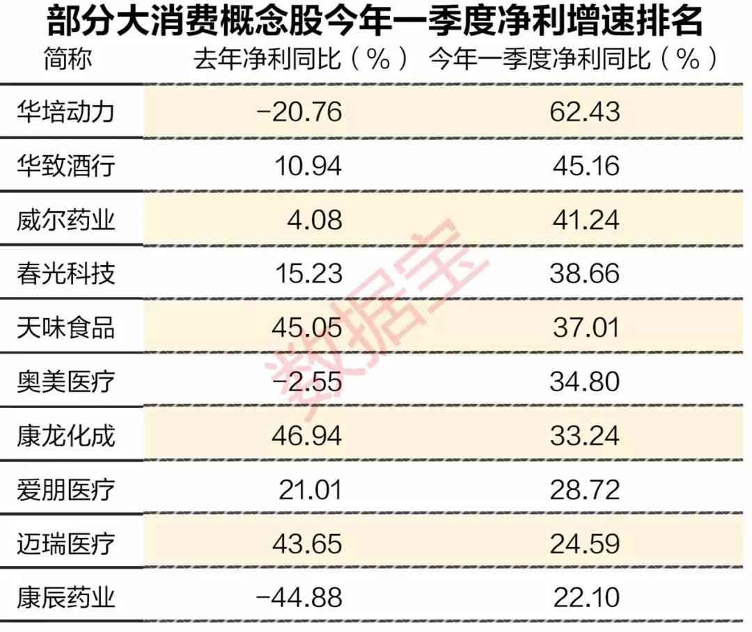 数据显示,榜单中仅顶固集创、立华股份等两只个股今年一季度净利出现了大幅下滑迹象。而增速最高的个股是华培动力,一季度净利同比增长超过62%。华致酒行、威尔药业一季度净利增速均超过40%,春光科技、天味食品、奥美医疗等多只个股一季度净利增速均超过30%。
