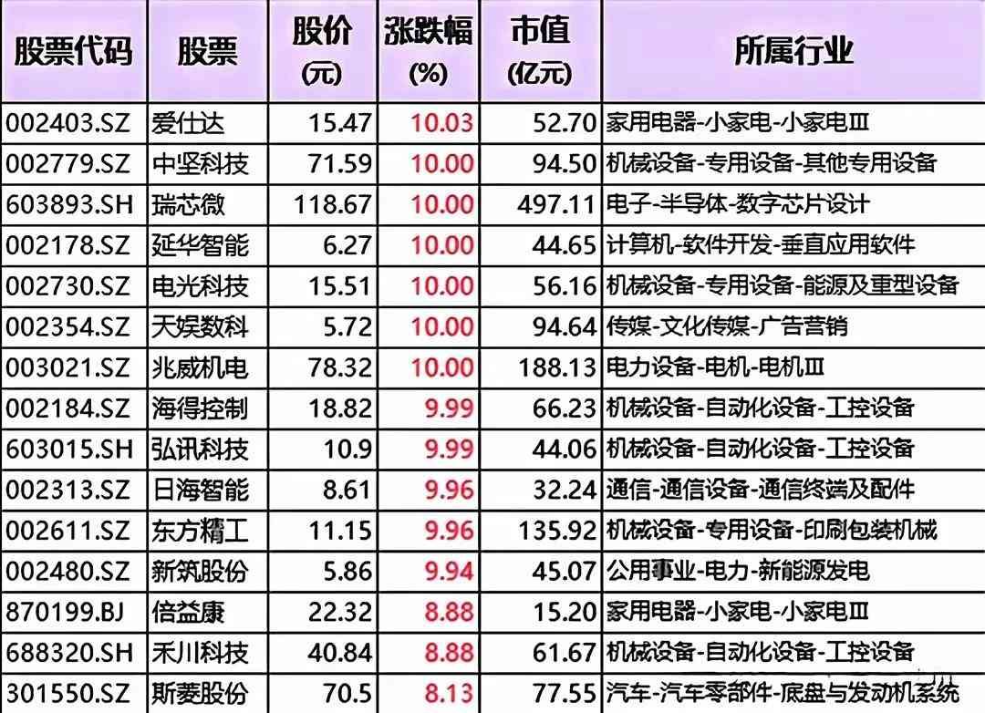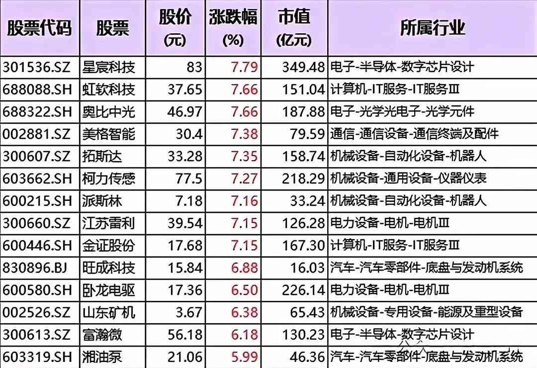 回到市场,人形机器人是将来一段或者很长时间都比较有预期的产业,因为在市场中也会经常有所表现,尤其是产业链里面的核心企业,更是可能会因此受益而水涨船高,所以这些企业也是值得重点关注的,我已经将他们梳理总结出来,分享到文章的下方,具体名单如下: