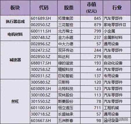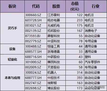 下面,按人形机器人不同核心零部件,整理了相关核心优质龙头股,供大家研究参考。如下: