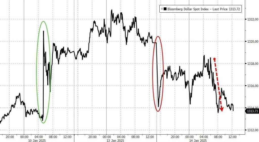 1月14日周二,美国PPI数据公布后上演反转行情,美元指数短线下跌逾20点后又拉升近20点,美股期货短线拉升后小幅走低,美国10年期国债收益率短线下挫后又急速拉升,现货黄金短线拉升约5美元后又下跌约9美元。