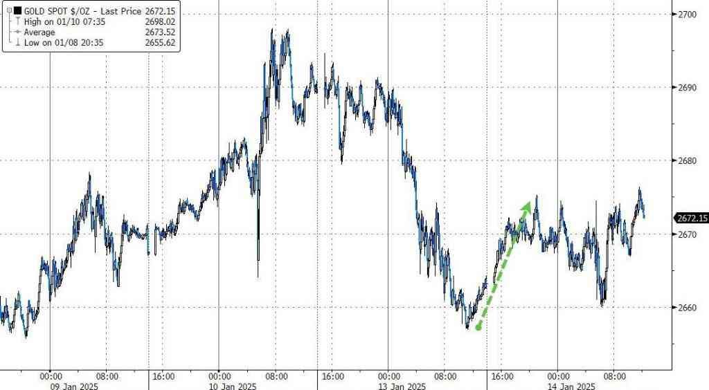 美油最低跌近1.8%下逼77.40美元美国PPI通胀增幅不及预期,美元走低支撑金价小幅走高,现货金最高涨近0.6%上逼2680美元,PPI发布后黄金曾短线下挫,随后转涨:
