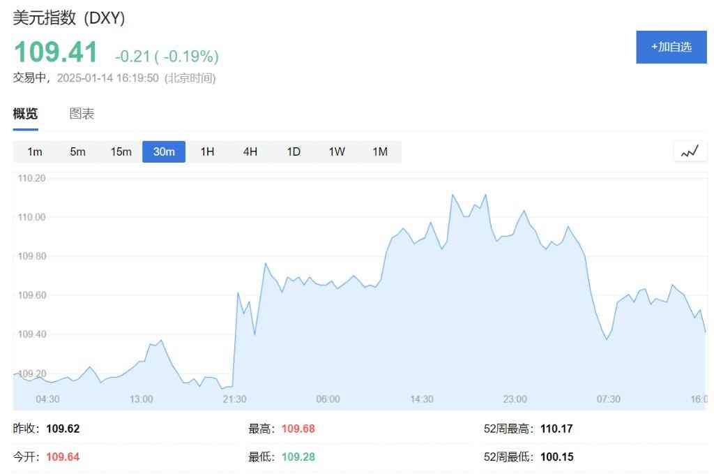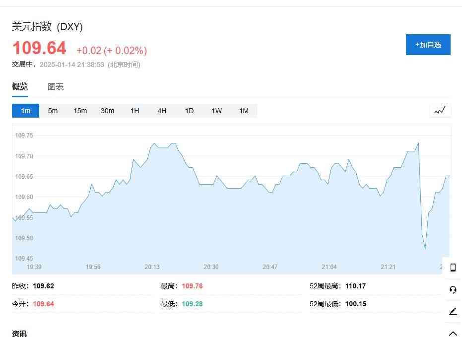 美元指数短线下跌逾20点后又拉升近20点,现报109.64。