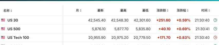 三大指数期货集体上涨。道琼斯指数期货涨0.35%,标普5指数期货涨0.53%,纳斯达克1指数期货涨0.73%.