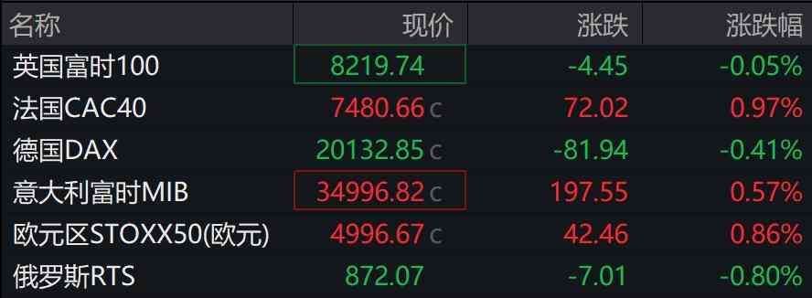 泛欧STOXX 6指数收跌0.08%,报508.28点。欧元区STOXX 50指数收涨0.53%。富时泛欧绩优3指数大致收平。德国DAX 30指数收涨0.69%,告别四日连跌。法国CAC 40指数收涨0.20%,告别两日连跌。荷兰AEX指数收跌0.03%。意大利富时MIB指数收涨0.93%。英国富时1指数收跌0.28%,三日连跌。西班牙IBEX 35指数收涨0.55%。