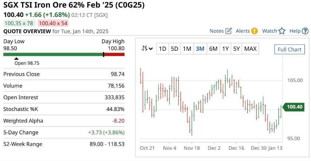 新加坡铁矿石期货涨1.68%报1.4美元/吨,突破1美元大关。
