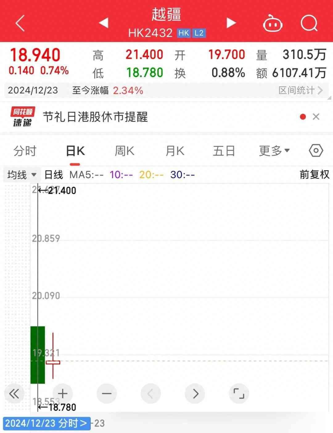 12月23日,作为“协作机器人第一股”,越疆科技终于登陆港交所,股票代码为2432.HK,IPO发行价为18.8港元/股。
