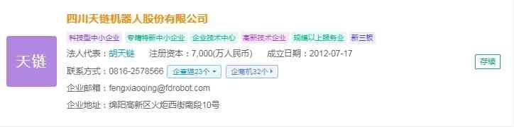 四川天链机器人股份有限公司(简称:川机器人)成立于2012年,注册资金为7,(万人民币),法人代表是胡天链。川机器人以自主研制机器人作为主营业务,是西南地区能提供全面自动化解决方案、具备光机电软一体化研发能力的系统集成商之一。
