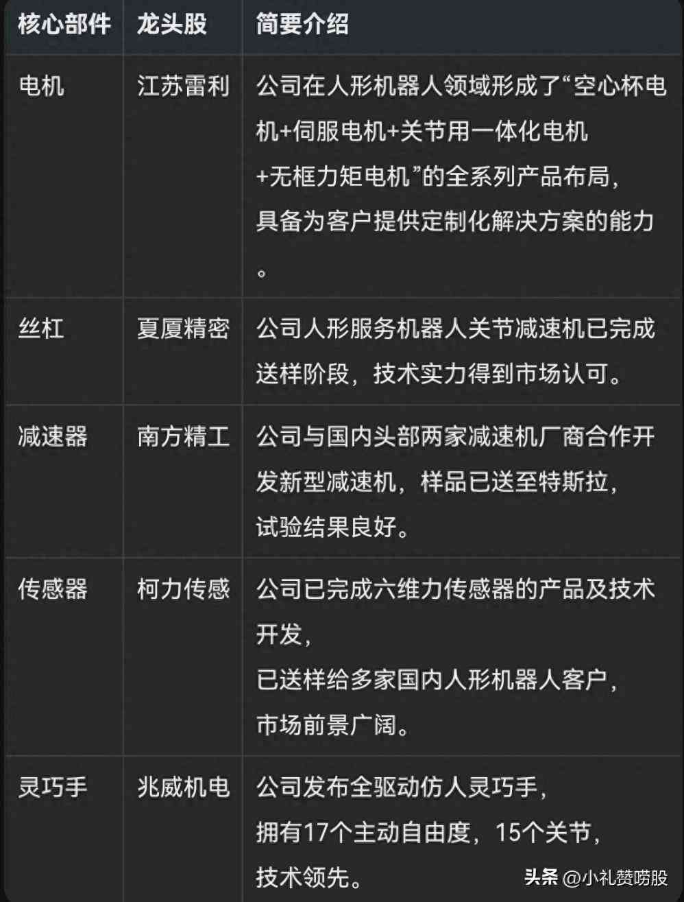 随着特斯拉、华为等科技巨头的纷纷布局,人形机器人产业正迎来前所未有的发展机遇。今天,我们就来深度解析人形机器人概念股,特别是那些涵盖电机、丝杠、减速器、传感器以及灵巧手等核心部件的龙头股。