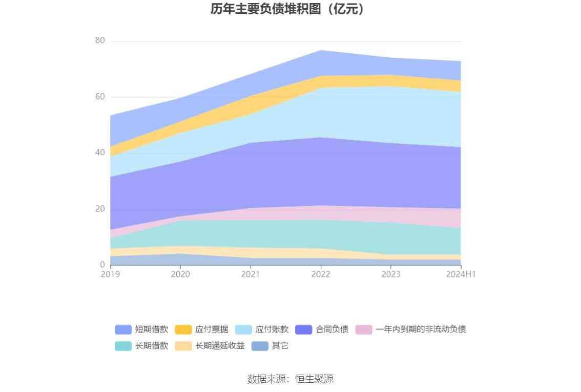 负债重大变化方面,截至2024年上半年末,公司长期借款较上年末减少17.07%,占公司总资产比重下降1.76个百分点;一年内到期的非流动负债较上年末增加25.81%,占公司总资产比重上升1.10个百分点;合同负债较上年末减少3.64%,占公司总资产比重下降0.93个百分点;短期借款较上年末增加12.91%,占公司总资产比重上升0.59个百分点。