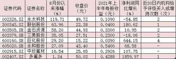 制冷剂板块8月份以来上涨9.21%,永太科技期间股价翻倍!