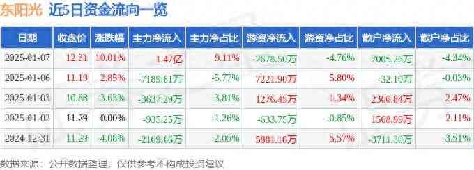 1月7日的资金流向数据方面,主力资金净流入1.47亿元,占总成交额9.11%,游资资金净流出7678.5万元,占总成交额4.76%,散户资金净流出75.26万元,占总成交额4.34%。