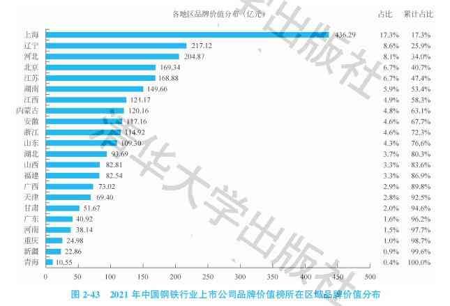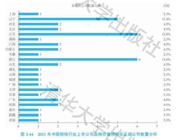 在2021中国钢铁行业上市公司品牌价值榜中,44家公司来自22个地区。