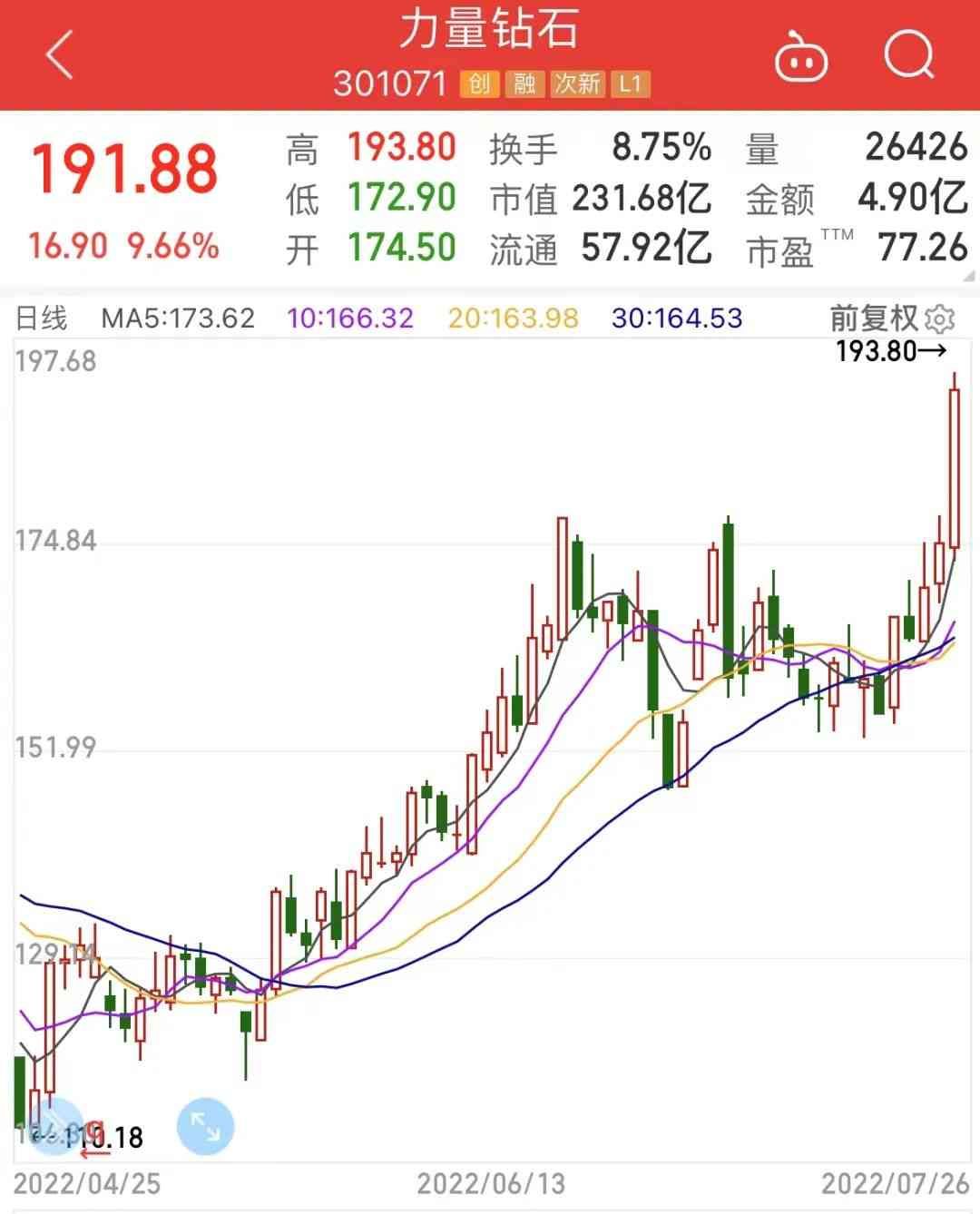 同日,公司宣布以184.55元/股向7名激励对象授予4.8万股限制性股票,激励对象包括2名高管、3名技术骨干和2名业务骨干。在今日早盘股价下跌之后,此次股权激励的价格已高出现价超10%。
