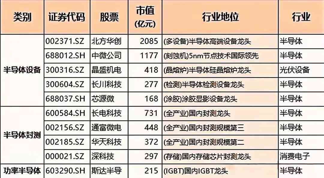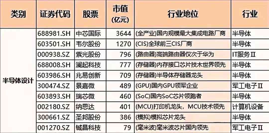 涵盖了中芯国际是国内规模最大的集成电路厂商;韦尔股份为全球前三CIS厂商;紫光股份高端路由器仅次于华为;澜起科技内存接口芯片技术世界领先;瑞芯微是国内SoC芯片领跑者;纳思达是打印机龙头且MCU技术领先;铖昌科技毫米波芯片国内领先······