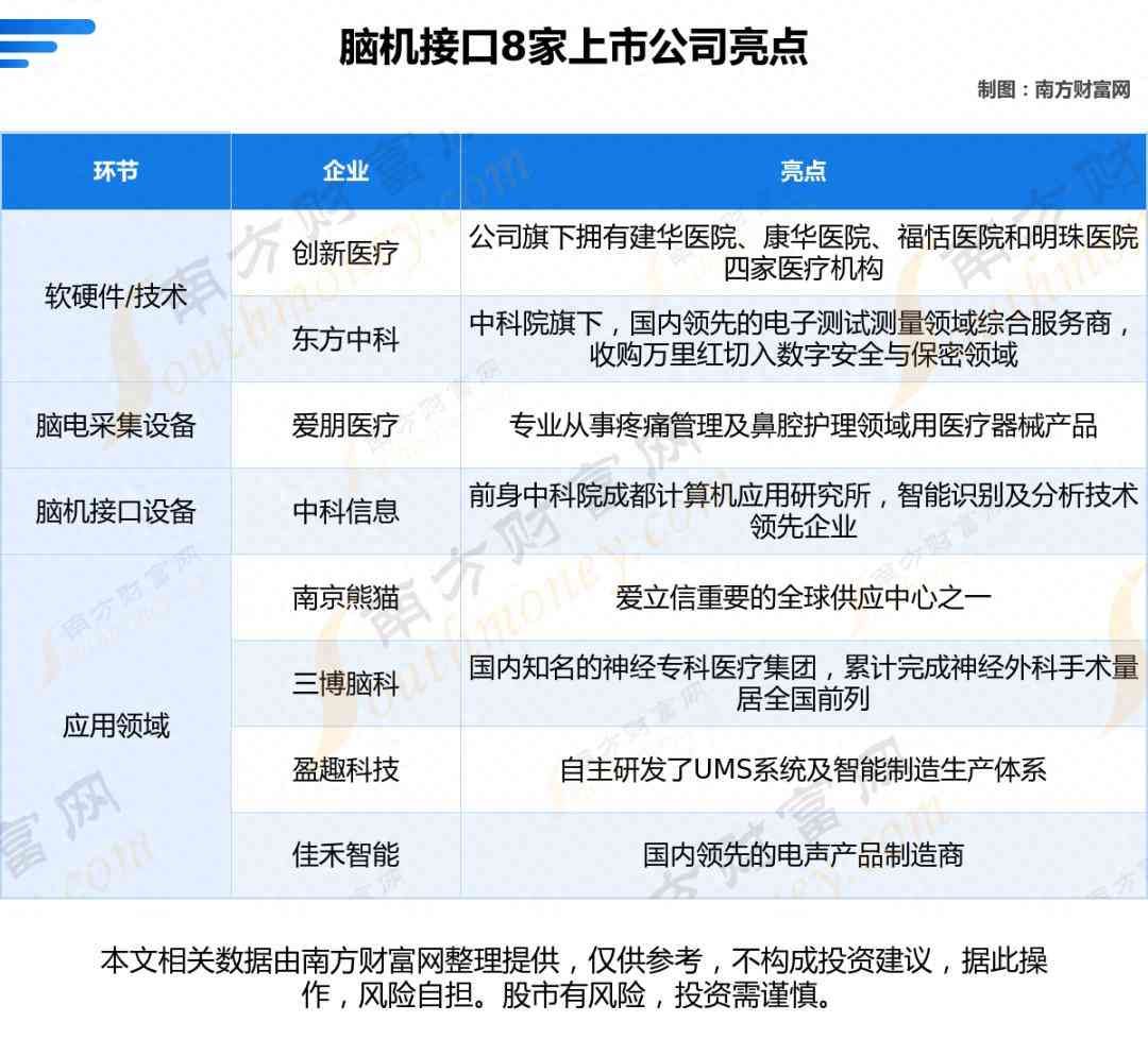 脑机接口股票龙头一览表,脑机接口8大核心龙头公司的全方位对比分析