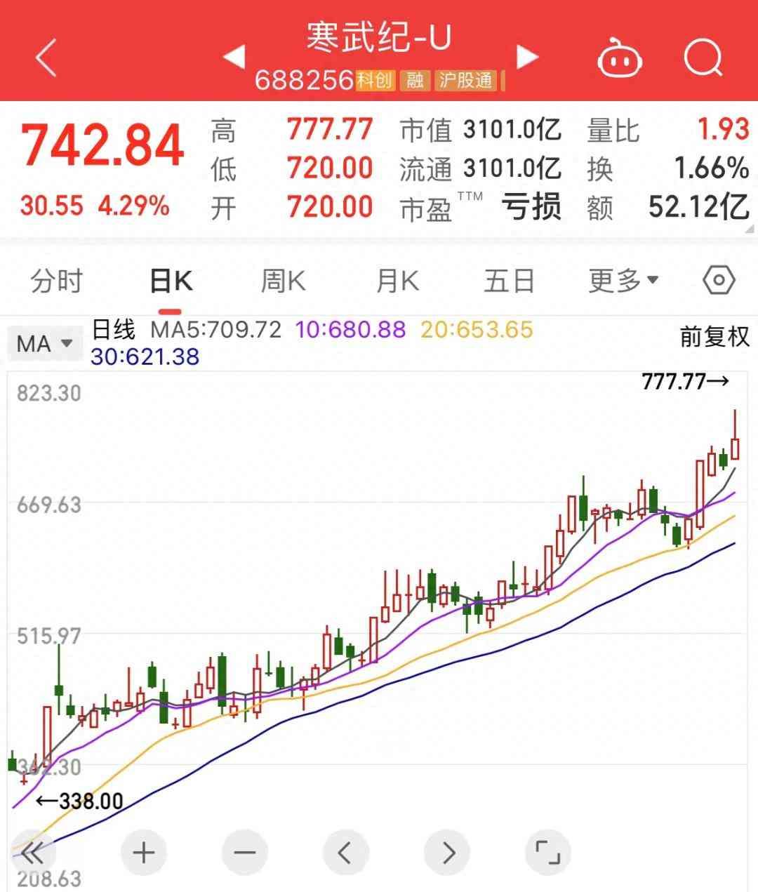 这就是寒武纪(688256),也被股民称为“AI一哥”。
