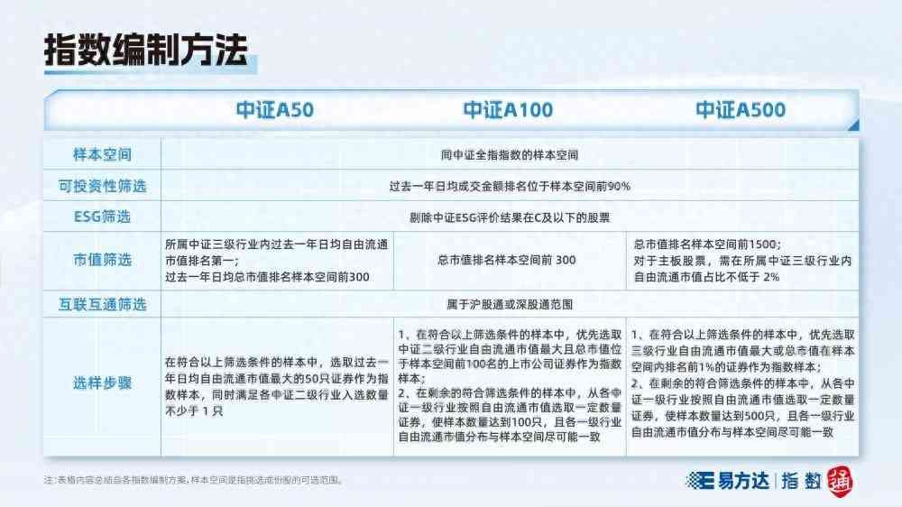 中证“A系列”这三只指数,均是在中证全指中基于传统的市值规模与流动性进行筛选,并在选样时融合行业均衡、ESG、互联互通等要素,拓展了可投资性的评价维度。