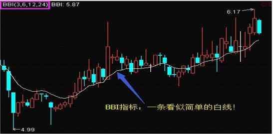 简单白线BBI指标,给我们不简单的炒股战法!BBI,又称为:多空指标。非常简单和特别,它只有一条白线,围绕着股价的波动而波动。如下图所示: