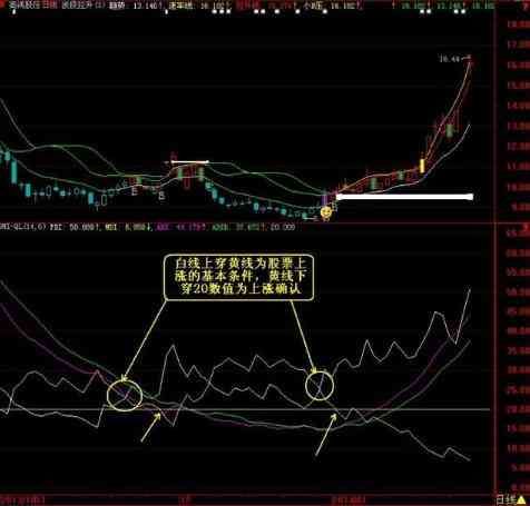 1.买点的选择:在实际运用时当白线PDI上穿黄线MDI为股票上涨的基本条件,黄线MDI下穿20数值为股票上涨的确认。在买卖股票时原则上不操作白线PDI在黄线MDI下方的票子,也就是不操作黄线MDI大于20数值的票。
