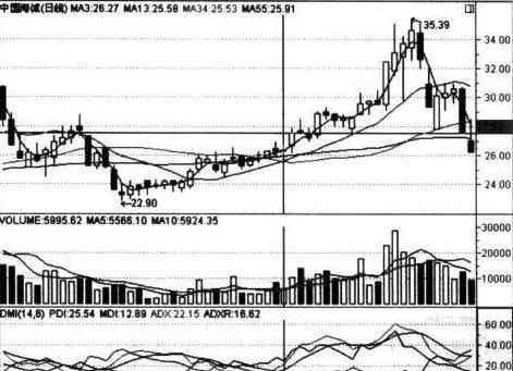 (2)、当(+DI)从上向下跌破下穿(-DI),是为卖出信号。