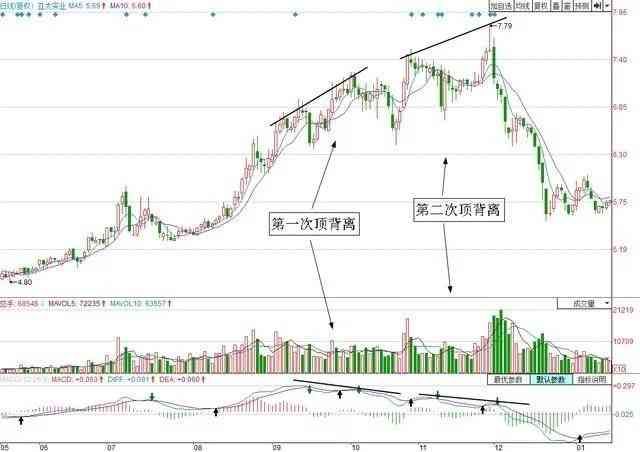 5、当MACD与股价生产顶背离时,为卖出信号;底背离时,为买入信号。股价出现两个以上近期相对低点,而MACD并不况合出现新低点,可以买入;股价出现两个以上近期相对高点,而MACD并不配合出现新高点,可以卖出。