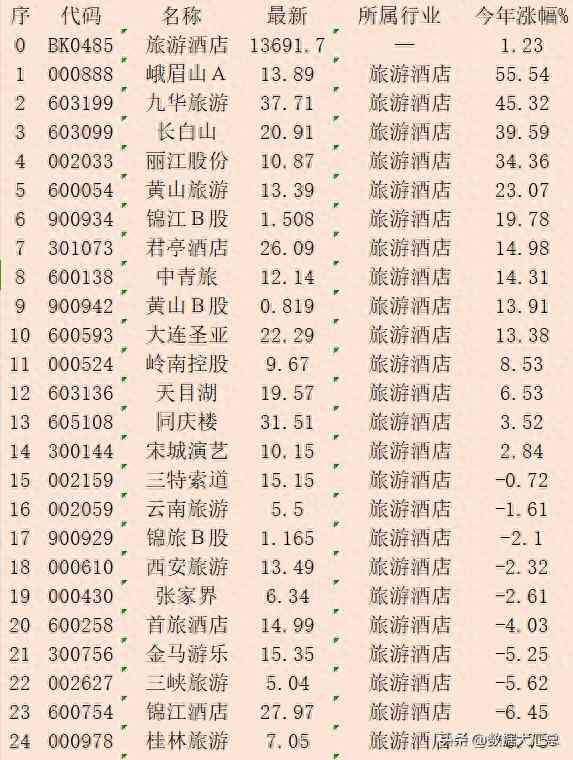 旅游酒店股票的十大龙头股票有哪些,36只旅游酒店概念股,今年以来涨跌幅排名