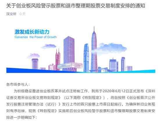 所以,今晚深交所发布的《关于创业板风险警示股票和退市整理期股票交易制度安排的通知》,就专门明确了这一情况。