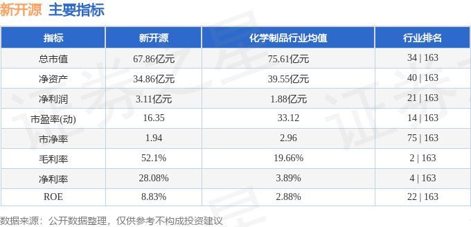 新开源2024年三季报显示,公司主营收入11.11亿元,同比下降7.92%;归母净利润3.11亿元,同比下降23.13%;扣非净利润3.22亿元,同比下降19.8%;其中2024年第三季度,公司单季度主营收入3.76亿元,同比下降12.0%;单季度归母净利润9831.34万元,同比下降31.11%;单季度扣非净利润1.04亿元,同比下降27.79%;负债率19.01%,投资收益-760.0万元,财务费用-979.03万元,毛利率52.1%。新开源(300109)主营业务:精细化工和精准医疗。
