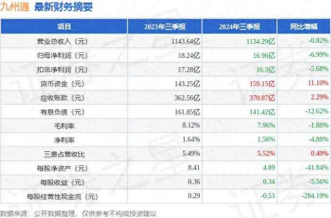 九州通(600998)2024年三季报简析:净利润减6.99%,盈利能力上升