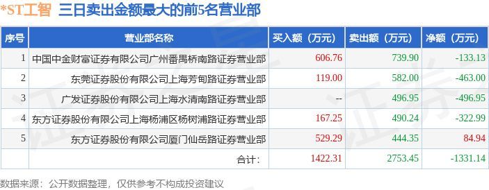 证券之星消息,沪深交易所2025年2月11日公布的交易公开信息显示,*ST工智(000584)因连续三个交易日内,涨幅偏离值累计达到12%的ST证券、*ST证券和未完成股改证券登上龙虎榜。此次是近5个交易日内第2次上榜。