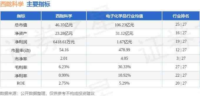 该股主要指标及行业内排名如下: