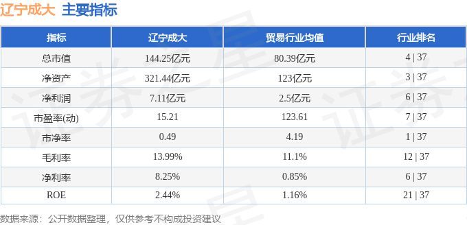 辽宁成大2024年三季报显示,公司主营收入82.82亿元,同比上升6.58%;归母净利润7.11亿元,同比上升18.93%;扣非净利润7.01亿元,同比上升17.83%;其中2024年第三季度,公司单季度主营收入28.89亿元,同比下降6.52%;单季度归母净利润2.52亿元,同比上升148.09%;单季度扣非净利润2.46亿元,同比上升112.87%;负债率33.73%,投资收益11.56亿元,财务费用4.71亿元,毛利率13.99%。辽宁成大(600739)主营业务:医药医疗、金融投资、供应链服务(贸易)和能源开发四大业务板块。
